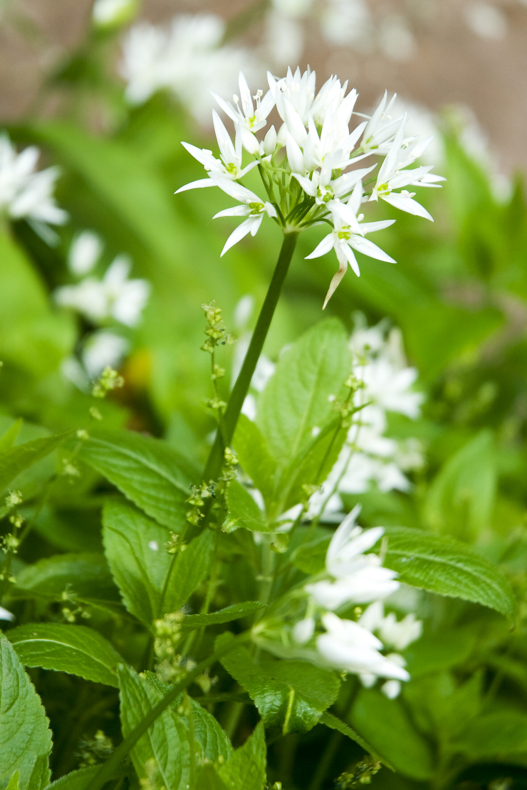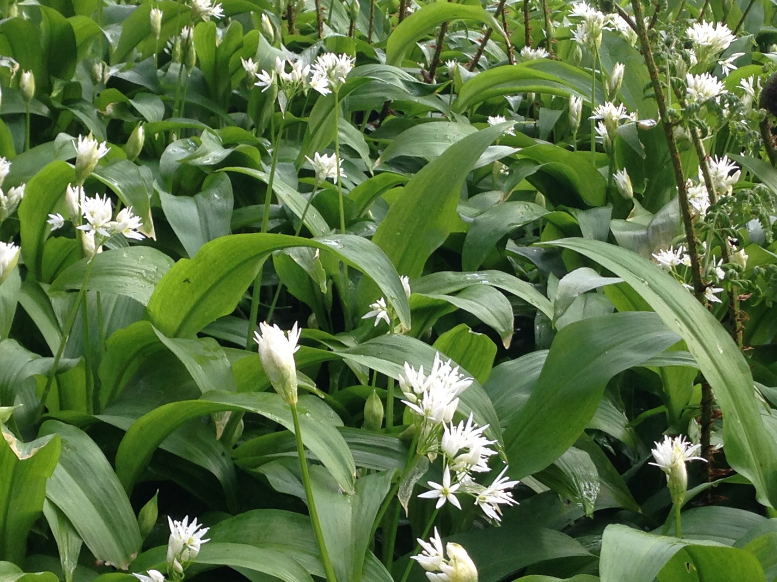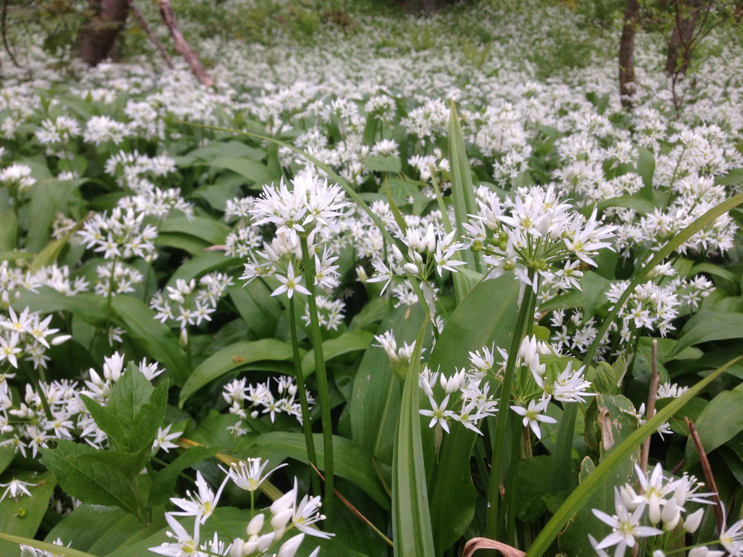 The ground is carpeted with bluebells and wild garlic, filling the air with a gentle scent. Early ferns begin to unfurl between the flowers, marking the arrival of the new season.